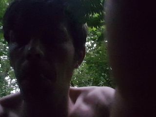 两个饥渴的twingk在河边敲打并舔他们的屁股